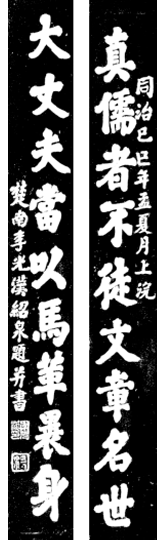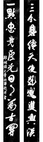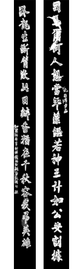 张之翚:生卒年份不详;为清乾、嘉时期川内著名书法家,传其字能镇鬼驱邪。联中“龙凤”二字,分别呈现出:龙头、凤尾、龙须和凤冠,栩栩如生,形象逼真。因“龙凤”在中国历史上所蕴涵的意义,此二字被民间认为能够趋吉避凶,祈福迎祥。