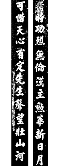 下联“日月”二字与上联“龙凤”相对,细品:其形、其意颇为传神。