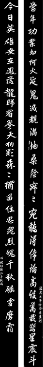 今日英雄安在?凤落龙归,看参天柏影森森,犹留住忠魂烈魄,千秋砺雪磨霜。